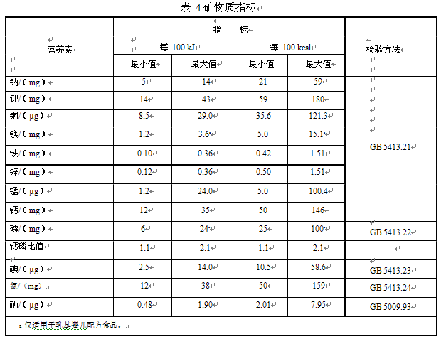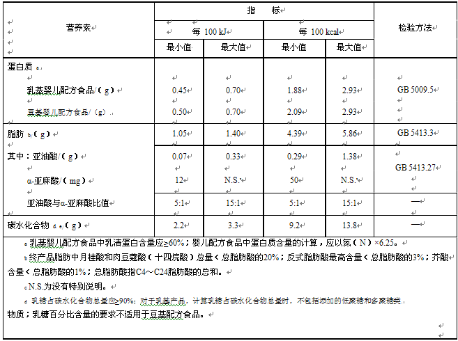 4.3.3 婴儿配方食品每100kJ (100 kcal) 所含蛋白质、脂肪、碳水化合物的量应符合表2的规定。