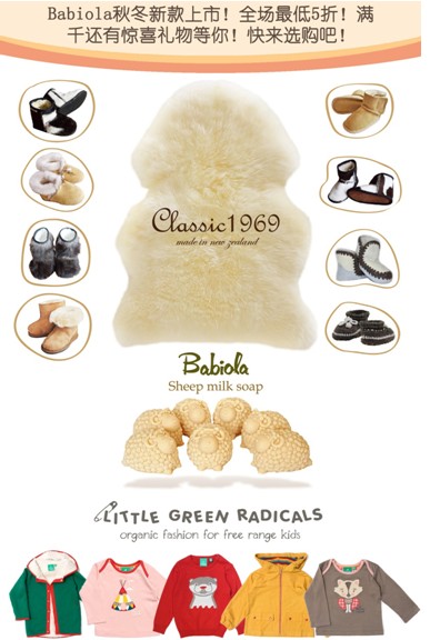 Babiola携有机大牌little green radicals,新西兰羊皮品牌classic 1969等众多有机和纯天然产品品牌,为宝宝的健康保驾护航! 冬季新款首上市,全场最低5折。满千还有惊喜礼物等你!