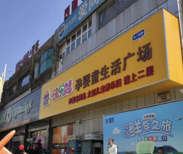 因此,我们做了一个大胆的尝试,把商场里的一个柜台,“搬”了出来、变成了一家专卖婴童用品的商店。这家店就叫“快乐娃”,我们希望孩子们都能度过一个快乐的童年。