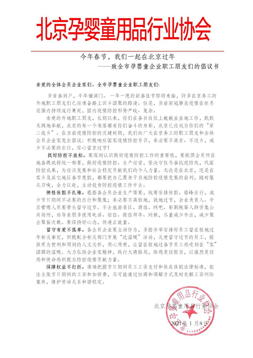 今年春节,我们一起在北京过年 ——致全市孕婴童企业职工朋友们的倡议书