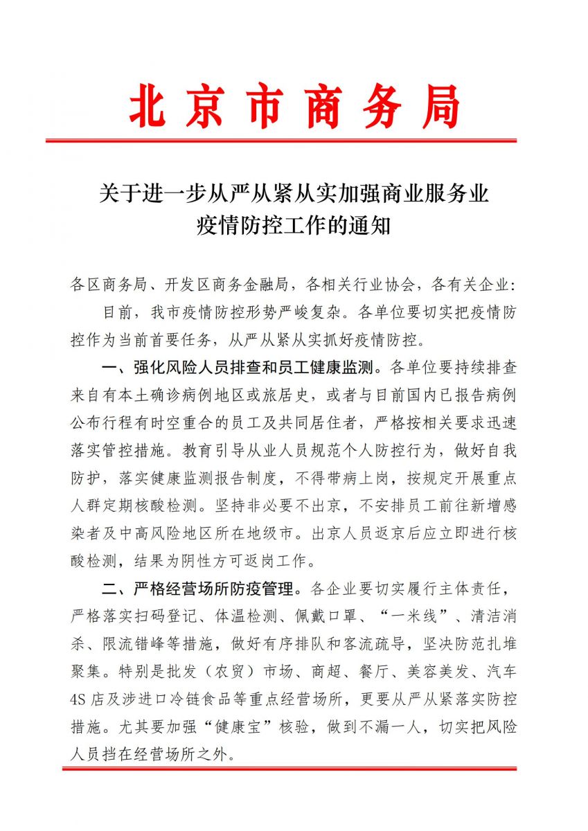 • 【转发北京市商务局】关于进一步做好疫情防控工作的通知
