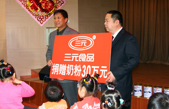 3月6日, 以“三元有爱 呵护成长”为主题的奶粉爱心捐赠活动在北京儿童福利院举办。此次活动,北京三元食品股份有限公司捐赠了价值30万元的优质“爱力优”奶粉,为福利院的孩子们送去了如母亲般的呵护与关爱,使他们健康茁壮成长。同时通过此次活动,三元也希望能倡导更多的社会公众关注孤残儿童,为他们送去温暖和关爱。