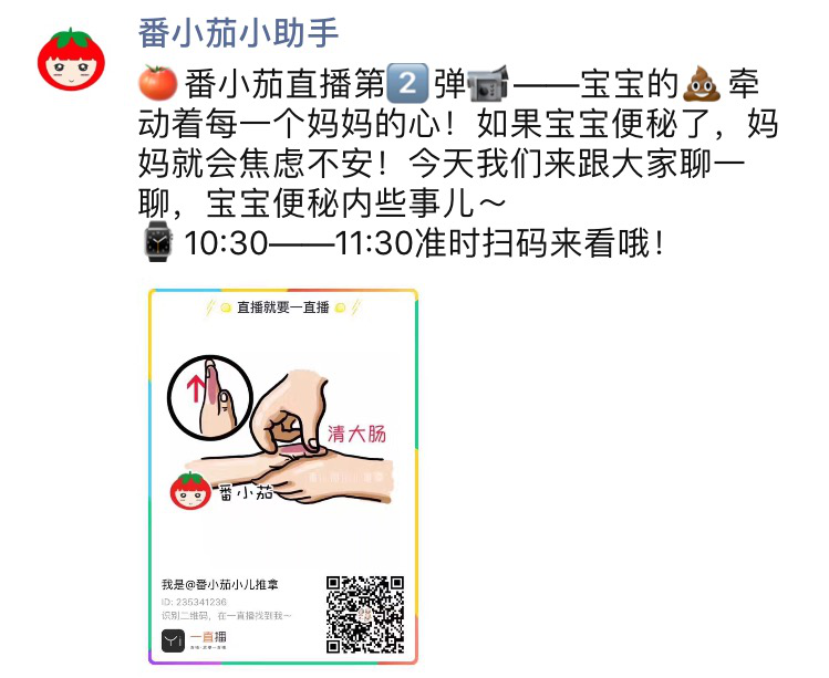 所以番小茄将与小儿推拿有关的线上图文、短视频和直播作为吸引妈妈群体的重要手段,主要合作传播渠道包括宝宝知道、大白妈妈等垂直社区,以及今日头条、腾讯视频等媒体平台。线上的科学育儿知识输出,是番小茄品牌宣传,以及获客的重要渠道。