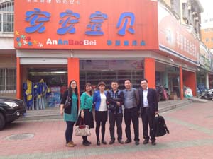 2014年,betway登录入口继续走进各母婴店,了解母婴店从单店到连锁的成长轨迹。4月23日,协会副秘书长杨红玲女士、办公室主任金焕联合两家会员代表,北京优康利达科技发展有限公司总经理张勇先生,比菲德(北京)生物科技有限公司副总经理董建光先生,一同来到北京密云县,拜访“安安宝贝”孕婴童用品总经理赵伟先生。