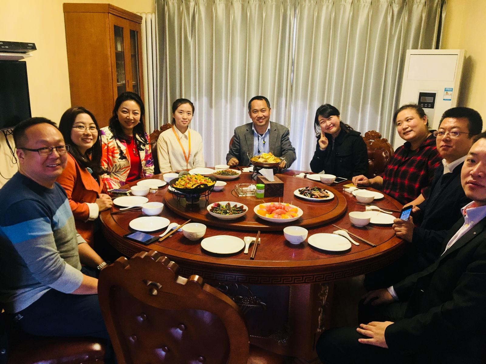 (爱亲董事长陈敬红先生安排了丰盛午餐、热情款待走访团)