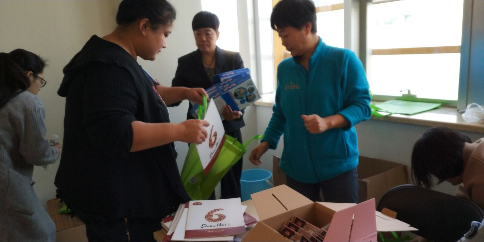 现场工作人员,正在为孕妈们准备丰富的签到礼品