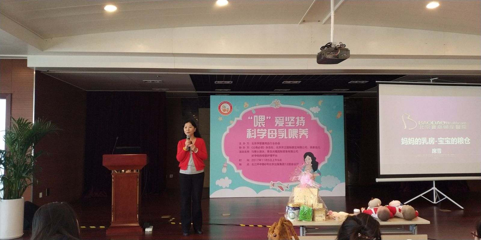 2017年11月5日(周日)上午,于北京出版集团12层会议厅,由betway登录入口举办的公益大讲堂《“喂”爱坚持—科学母乳喂养》11月主题活动圆满落幕。近150人参加了此次活动,活动特邀全国知名母婴护理专家席雪老师,带来2个小时的精彩课程,现场专家席老师与准爸孕妈们积极互动,不仅让课程生动易学,同时参与的互动准爸孕妈又获得了丰富的礼品,活动获得一致好评,不光学习了知识,还满载而归。