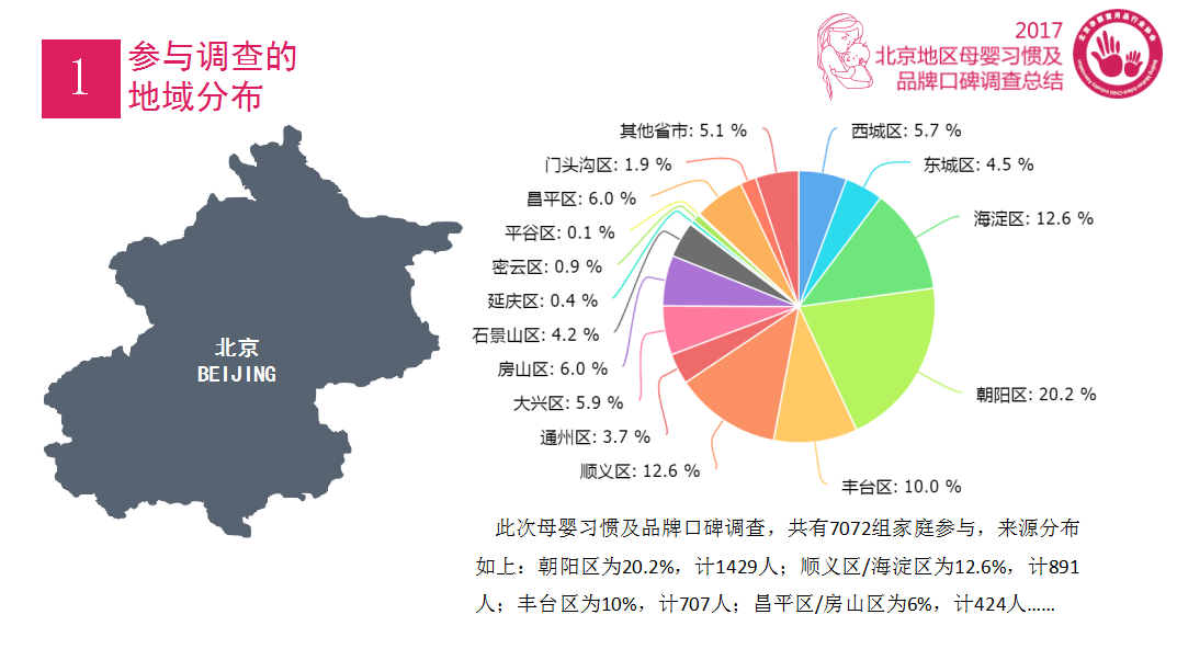 为了解北京孕婴童人群消费习惯,监督、提高北京地区母婴行业服务水平,betway登录入口联合《父母必读》杂志、好太太网、宝宝巴士,通过协会线下2017孕婴童文化节、孕妇公益大讲堂活动、电话调研、网络调研、微信调研等多种方式,从2017年9月16--2017年12月14日,历时90天,针对0-6岁北京地区母婴消费家庭,发起了“2017北京地区母婴习惯及品牌口碑大调查”的活动。此次调研共收回7072份问卷,调研结果如下。调研报告仅对所采集的样本负责,仅供行业参考。
