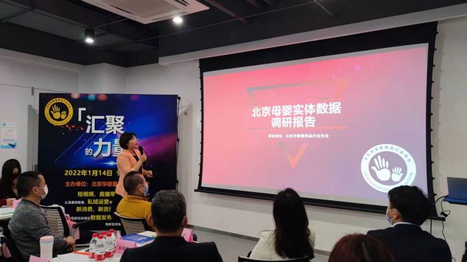 协会的协会代理秘书长北京京正国际展览有限公司总经理杨红玲女士代表协会秘书处发布了“2021北京母婴实体数据调研报告”。报告主要调研了,北京市全市母婴业态,包括:母婴用品店、童装及品牌专卖店、婴幼儿游泳、儿童摄影、小儿推拿、托育早教、亲子游乐、月子会所、产后修复、私立医院、母婴服务公司等。着重叙述了母婴用品店、婴幼儿游泳、儿童摄影、小儿推拿、产后修复五大板块市场情况。