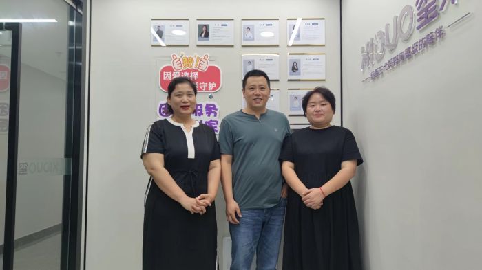 玺朵孕产服务中心创始人李晓兰(右)、联合创始人任树成(中)