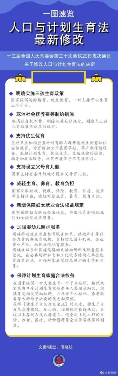 2021年8月20日,人口与计划生育法完成修改,三孩生育政策正式入法。