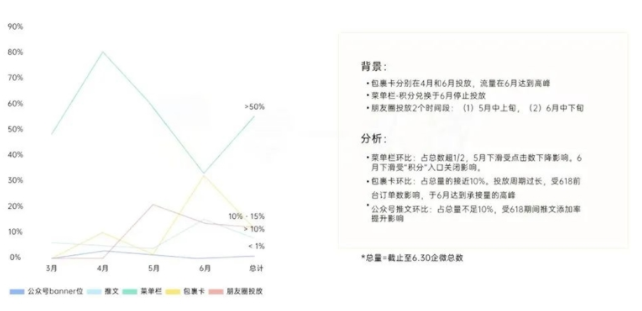 具体到「公众号引流」,则包含了如下颗粒度:新增欢迎语、单独推文、开头贴片、文末贴片、菜单栏、服务号模板消息、服务流进度模板通知的贴片...