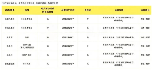 1)从天猫、京东等电商包裹卡引流添加的用户,根据不同主题的包裹卡拉到对应不同的 VIP 会员社群;