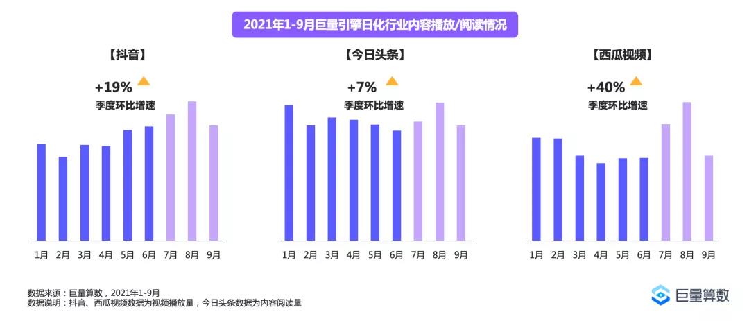 需求方面,抖音与西瓜视频两大内容平台日化行业视频播放量双双增长,后者季度环比增速接近40%。今日头条内容阅读量年内趋稳,但较Q2仍有7%的增长。