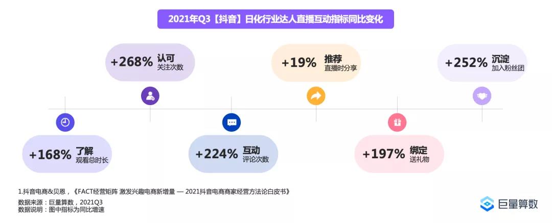 从用户旅程视角看,达人直播在认可层面与沉淀层面的关键指标较去年同期分别增长268%与252%,兴趣电商的雪球式增长逻辑再次得到印证。