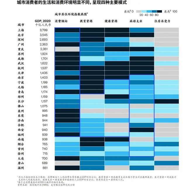 未来,麦肯锡预计中国将有90%的消费者增长来自城市。但不同的城市消费市场之间存在着巨大差异,这种差异主要体现在四种模式上: