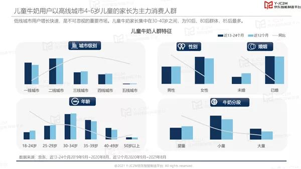 近日,京东JC2M智能制造平台发布《儿童牛奶行业趋势报告》。《报告》对儿童牛奶消费行业进行了分析,高线城市80、90新生代家长已经成为该类商品消费主力军。报告显示,儿童牛奶消费呈现持续增长态势,天然、轻奢、成份、精细、国货等成为儿童牛奶选购的关键词。