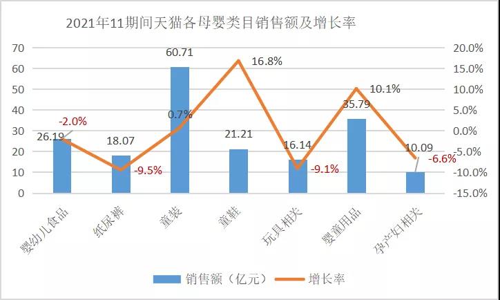 先来说说今年双十一期间母婴各品类大盘的变化。