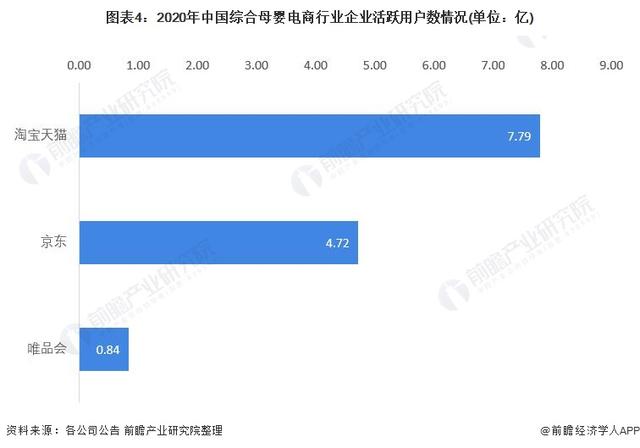 综合母婴电商的2020年活跃用户以淘宝天猫的用户数为最,达到7.79亿;京东为4.72亿,与淘宝天猫平台相差3.07亿。唯品会为0.84亿,尚未达到1亿规模。总的来看,2020年,国内综合母婴电商仍以阿里巴巴集团旗下的淘宝天猫的活跃用户数量最多。