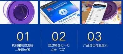 一罐一码通常会把码赋在罐身外,消费者扫码即可和品牌商实现双向追溯,正向自上而下追溯产品构成、生产及渠道信息;反向自下而上追溯产品工厂信息、加工工序,最终追溯到原料采购、牧场、奶牛等环节。