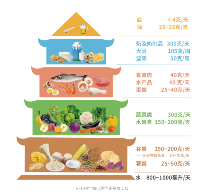 据2022版《中国居民膳食指南》显示,儿童平衡膳食应该是多样性的,大豆坚果奶类、畜禽肉蛋水产品类、谷薯类、水果类、蔬菜类等,而油盐类要适量摄入。