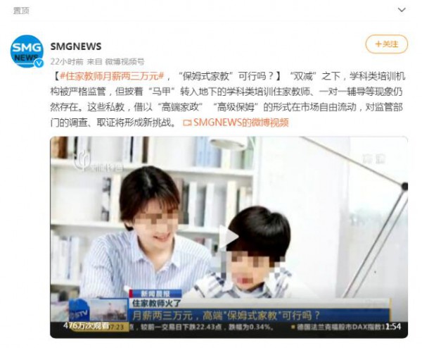 “双减”之下,学科类培训机构被严格监管,但披着“马甲”转入地下的学科类培训住家教师、一对一辅导等现象仍然存在。这些私教,借以“高端家政”“高级保姆”的形式在市场自由流动,对监管部门的调查、取证将形成新......
