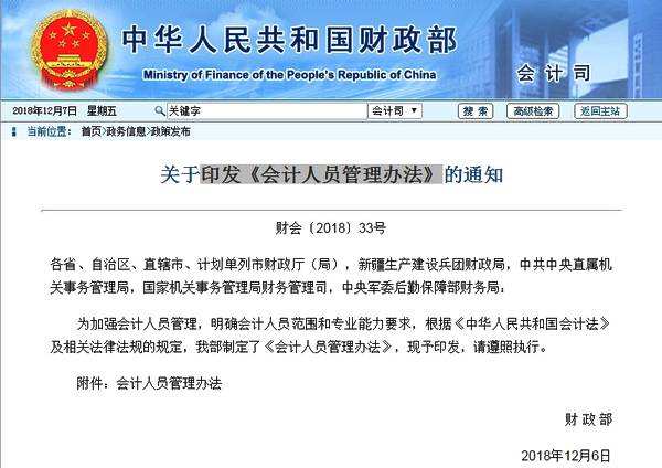 财政部出台《会计人员管理办法》,2019年1月1日起正式实施【编者按】 为加强会计人员管理,明确会计人员范围和专业能力要求,根据《中华人民共和国会计法》及相关法律法规的规定,财政部刚刚出台了《会计人......